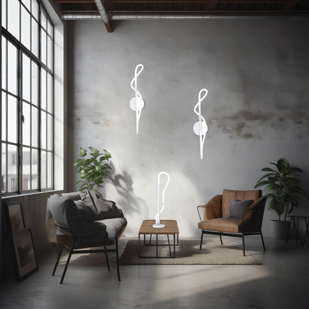 Thanks to the Noemi collection you can literally give shape to your light. A metal structure with a brushed brass or matt white finish, meets a luminous tube, a soft and sinuous source of light. The light it develops is excellent for illuminating an entire room, whether it is classic or modern.