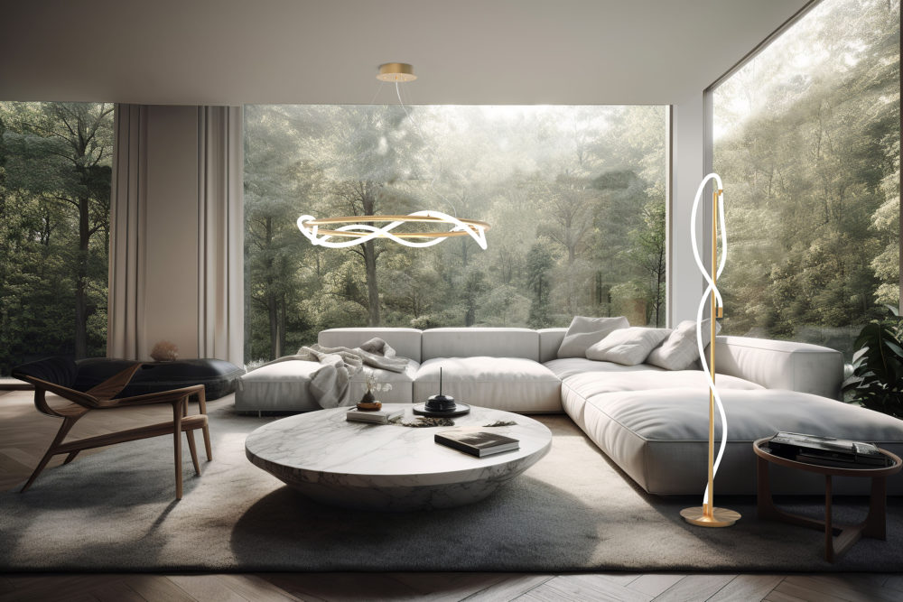 Collezione Noemi Sikrea, grazie a cui puoi letteralmente dare forma alla tua luce. Una struttura in metallo con finitura in ottone spazzolato o bianco opaco, incontra un tubo luminoso, fonte morbida e sinuosa di luce. La luce che sviluppa è ottima per illuminare un intero ambiente, sia classico che moderno.